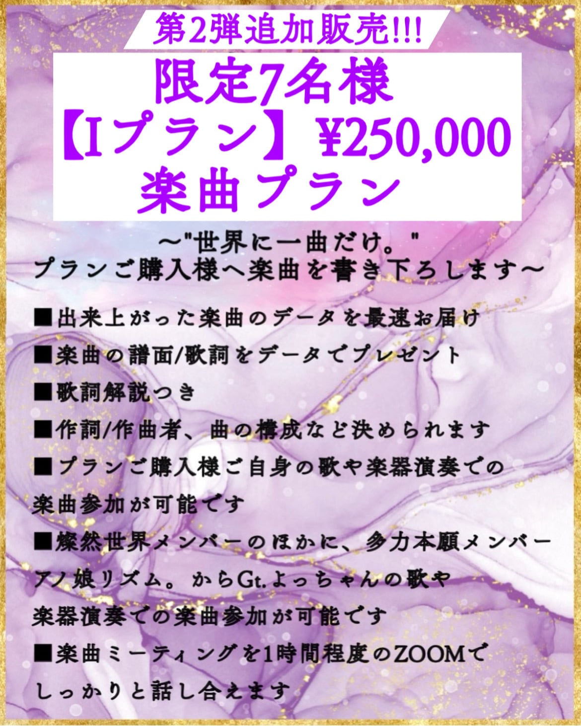 第2弾追加販売!!!限定7名様【Iプラン】楽曲プラン ¥250,000