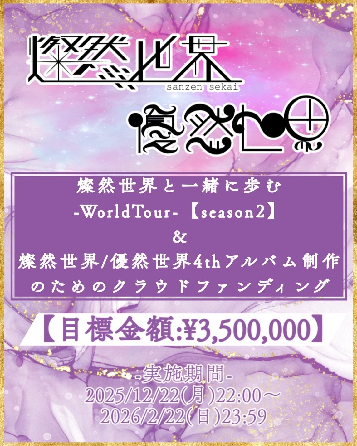 燦然世界/優然世界4thアルバム制作のためのクラウドファンディング